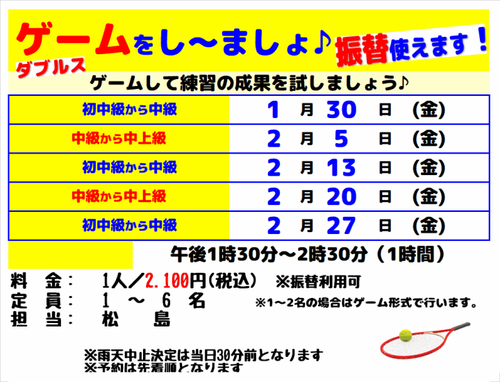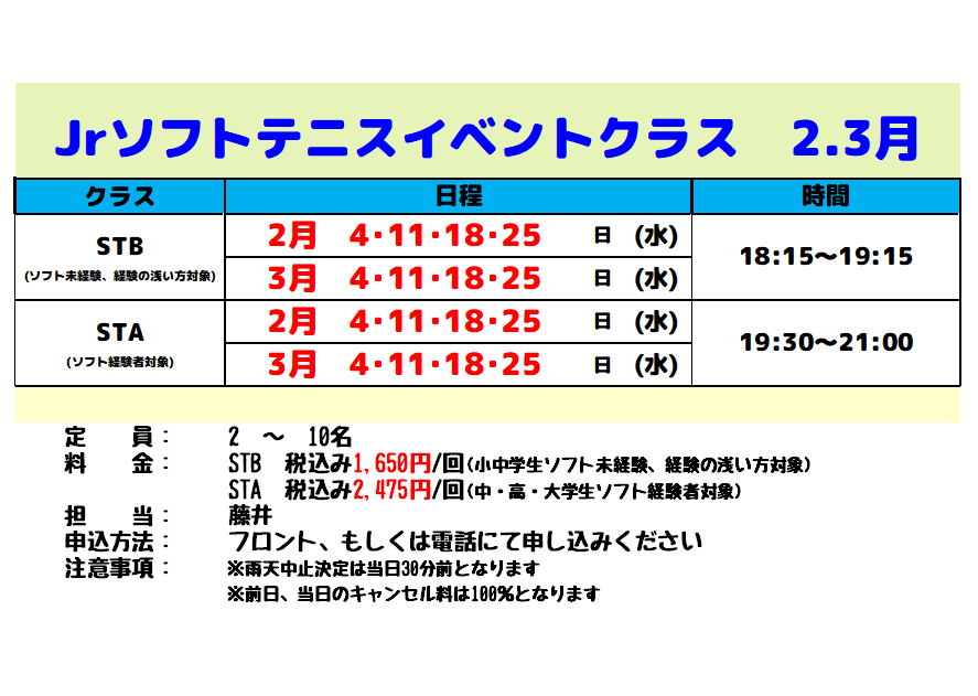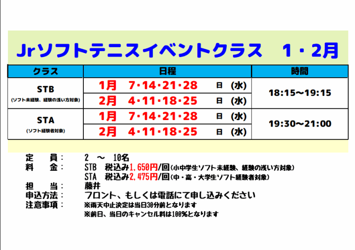 イベント・振替クラス・ソフトテニス