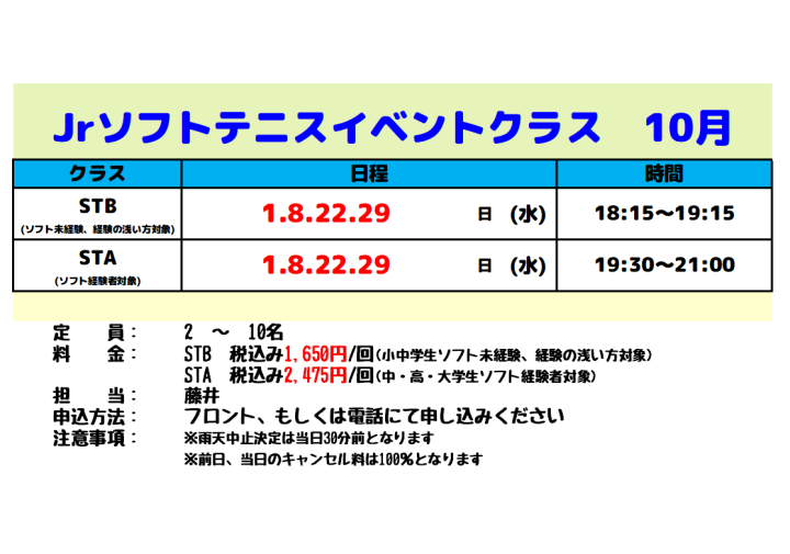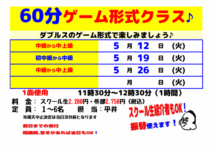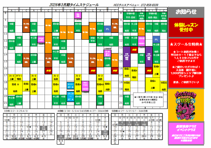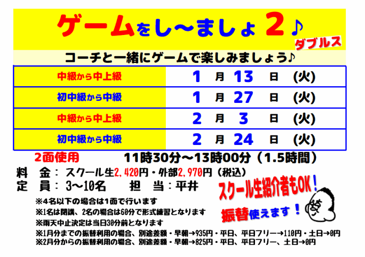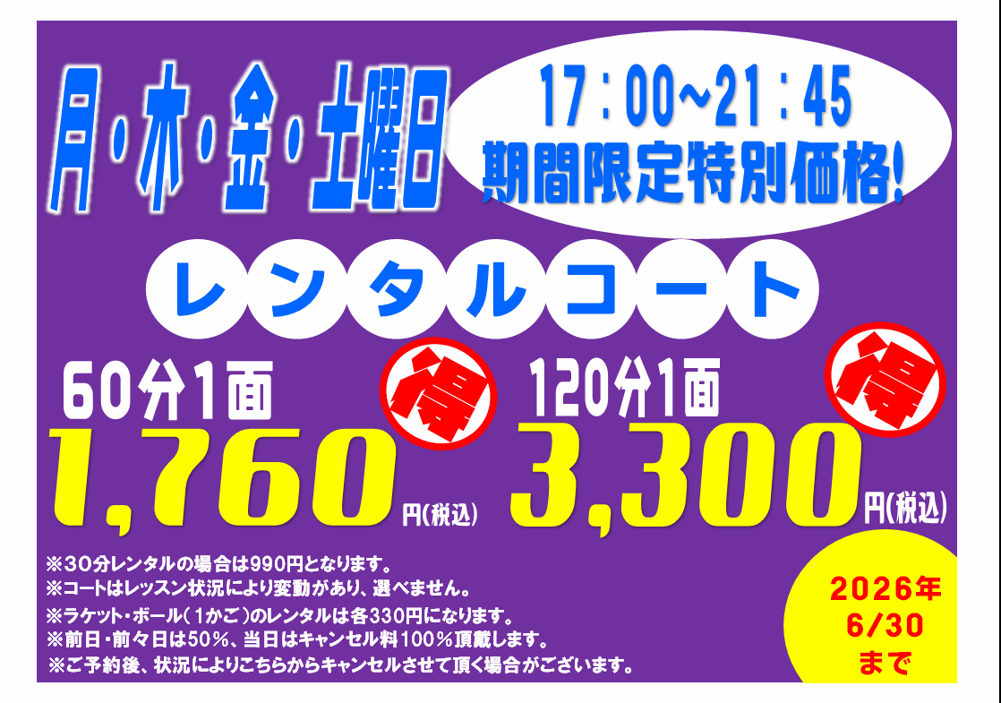 - 2022.08.01 平日スクール生コート利用がお得に!!!