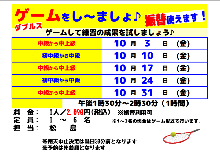 - 2023.09.13 初めてテニスアベニューへ車で来られる方用の地図はこちら